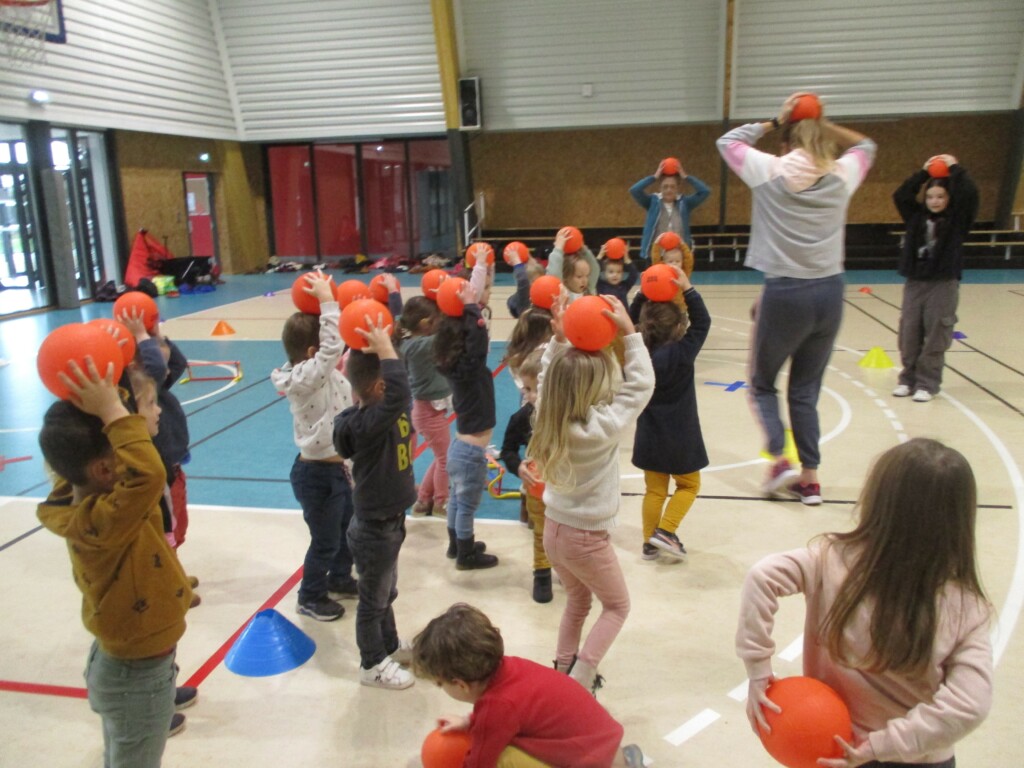 Depuis le mois de novembre, nous avons fait des séances de babyhand. Nous avons appris à bien tenir le ballon, le lancer avec les bons gestes… Aussi, le 28 novembre, Emilie, une éducatrice sportive de l’UGSEL, est venue nous faire découvrir le babyhand à partir de l’univers de la mer. Nous nous sommes déplacés dans